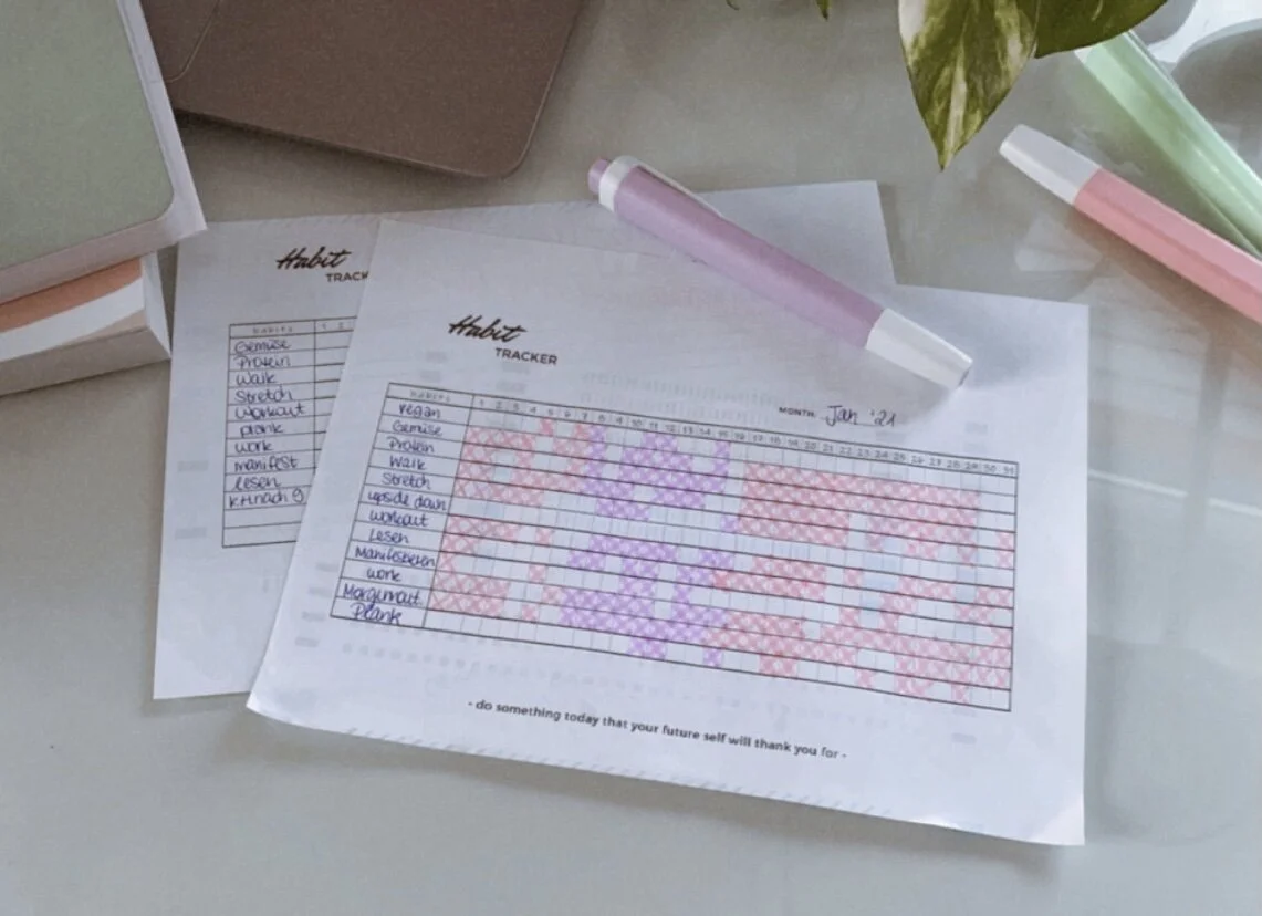Mit dem Habit Tracking habe ich eine Methode gefunden, durch die ich mir nicht nur vornehme etwas zu verändern, sondern es auch wirklich durchziehe & zu einer Routine mache.